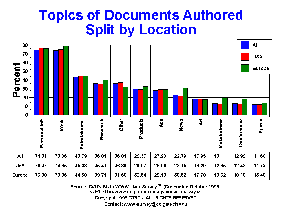 - Personal home pages and work related pages were authored by more than 3/4 of the respondents.