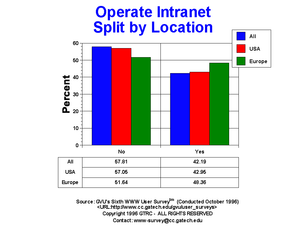- Just under half of the webmasters who responded are operating an internal server (42.19%). The percentage who operate internal servers in Europe is slightly higher: 48.36%.