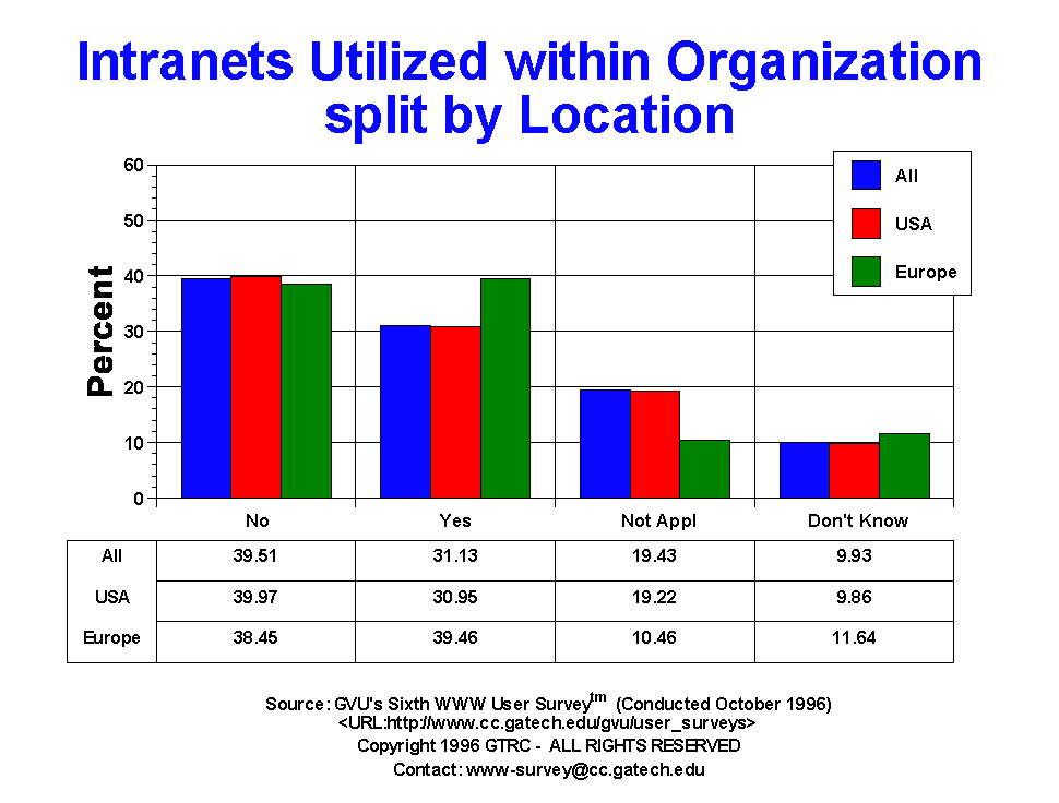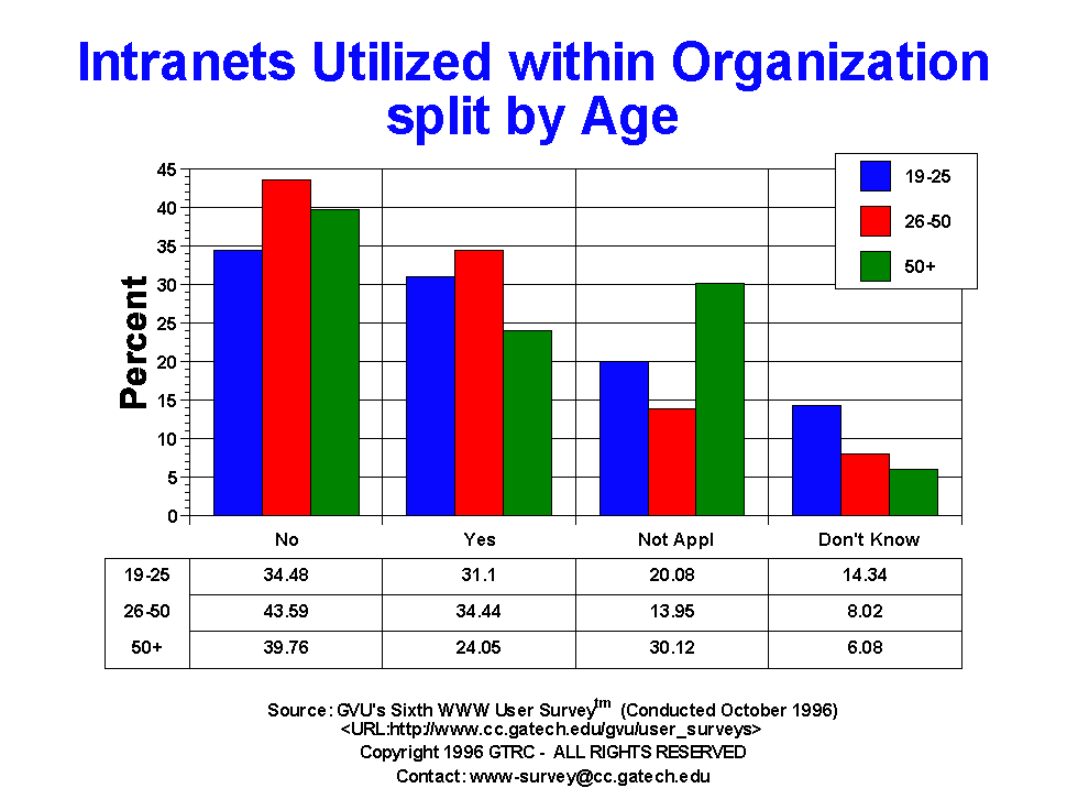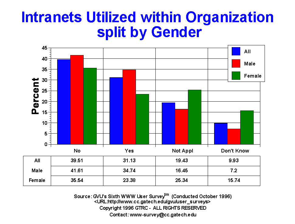 | Intranet Use | All | Male | Female | USA | Europe | 19-25 | 26-50 | 50+ |