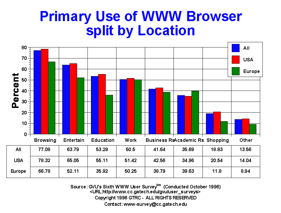 available. Europeans tend to report less recreational uses of the Web than do US users.