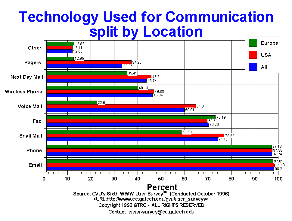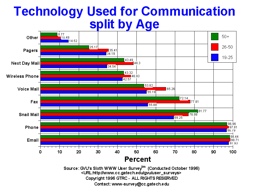 | Use of Communication Technologies | All | Male | Female | USA | Europe | 19-25 | 26-50 | 50+ |