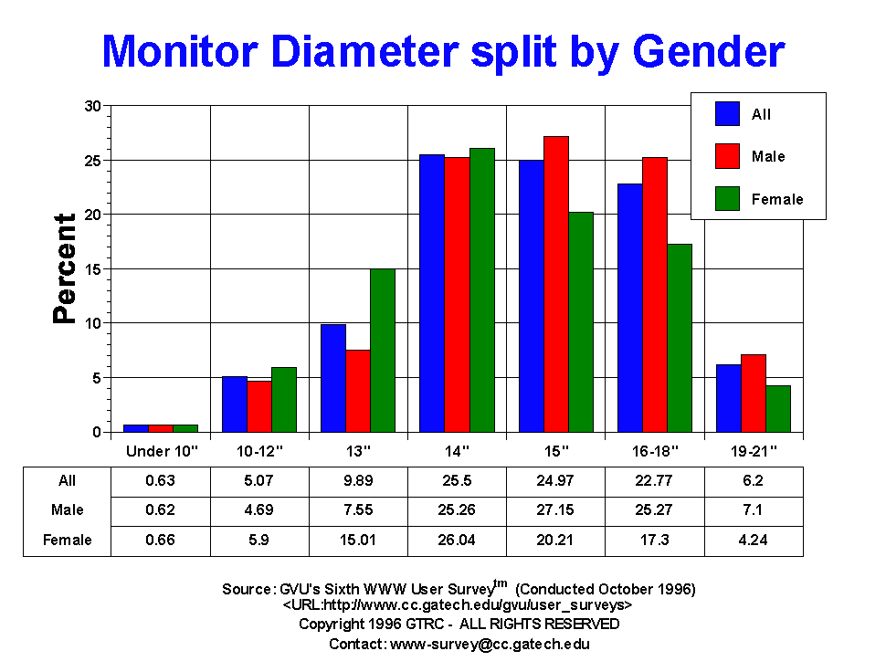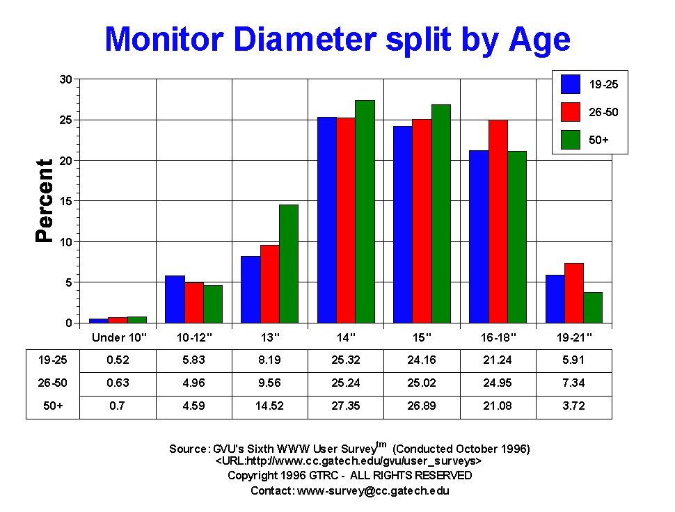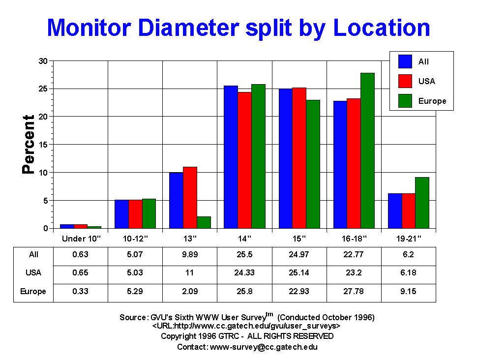 | Monitor Screen Size | All | Male | Female | USA | Europe | 19-25 | 26-50 | 50+ |