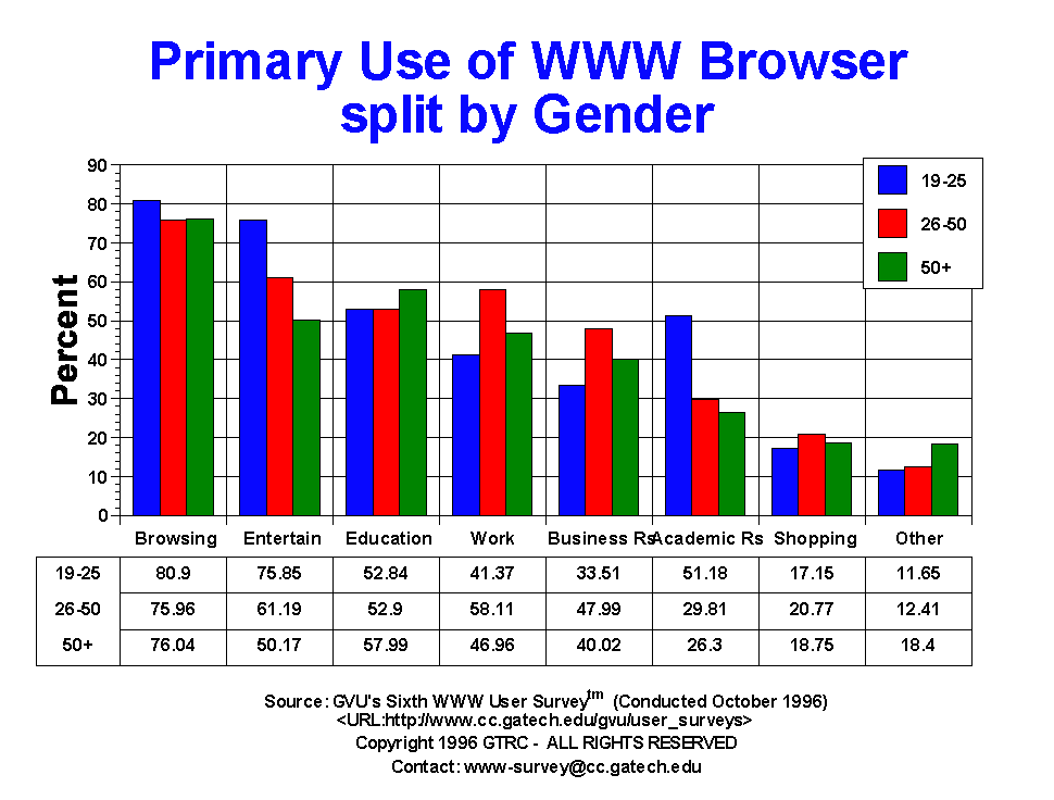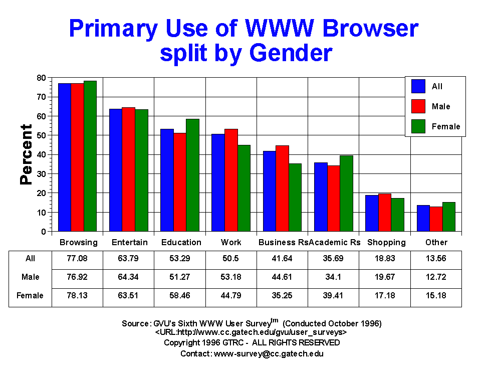 Web: work (53.18%) and business research (44.61%) while females reported more