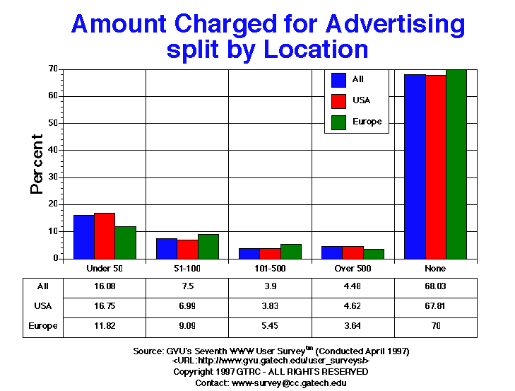 - As in previous surveys, most web service providers do not allow advertising on their site (68.0%). For those that do, the largest group charge less than $50 per week (16.1%).