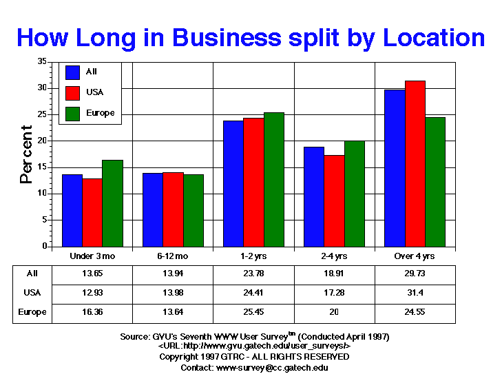 - There seems to be a slight slowdown in the number of new web service providers: 27.6% report being in business for less than a year compared to 35.8% six months ago. The same percentage as in the Sixth survey, however, report being in business for over four years (29.7%).