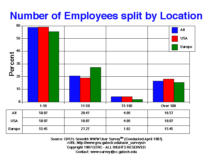 - The largest category of web service providers have between one and ten employees (58.9%). Europeans have more mid-sized firms (11-50 employees) while Americans tend to have either large or small firms.