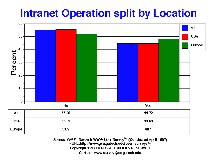 - Just under half of the Webmasters who responded are operating an Intranet (4.72% Seventh vs. 42.19% Sixth). The number of Webmasters that operate Intranets in Europe is slightly higher: 48.10% Seventh vs. 48.36% Sixth.