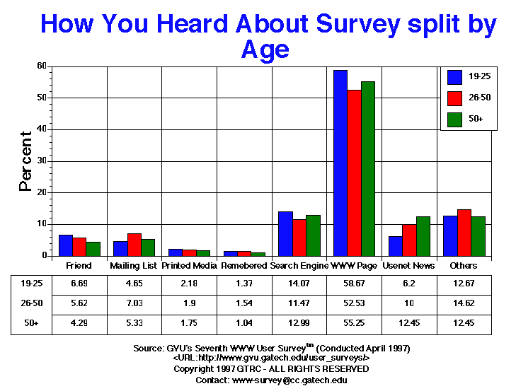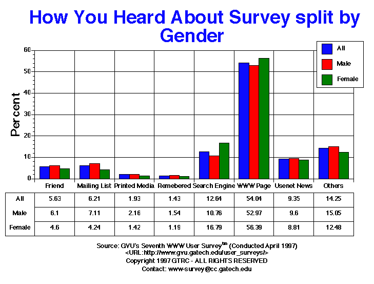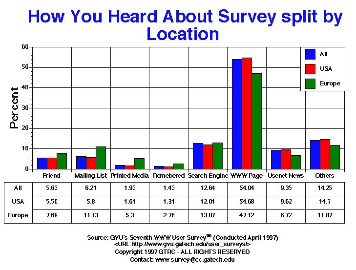 | How You Heard About Survey | All | Male | Female | USA | Europe | 19-25 | 26-50 | 50+ |