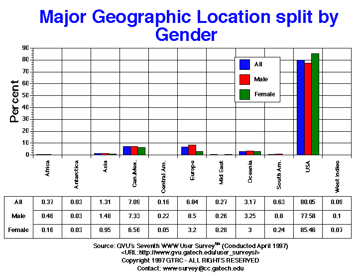 | Major Geographical Location | All | Male | Female | USA | Europe | 19-25 | 26-50 | 50+ |