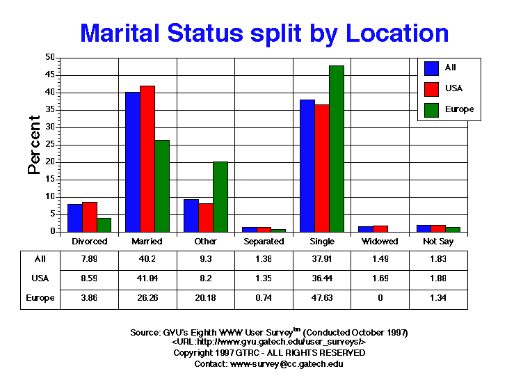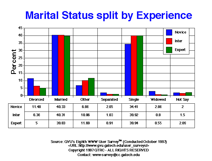 | Marital Status | All | Male | Female | USA | Europe | 10-18 | 19-25 | 26-50 | 50+ | Novice | Intermediate | Expert |