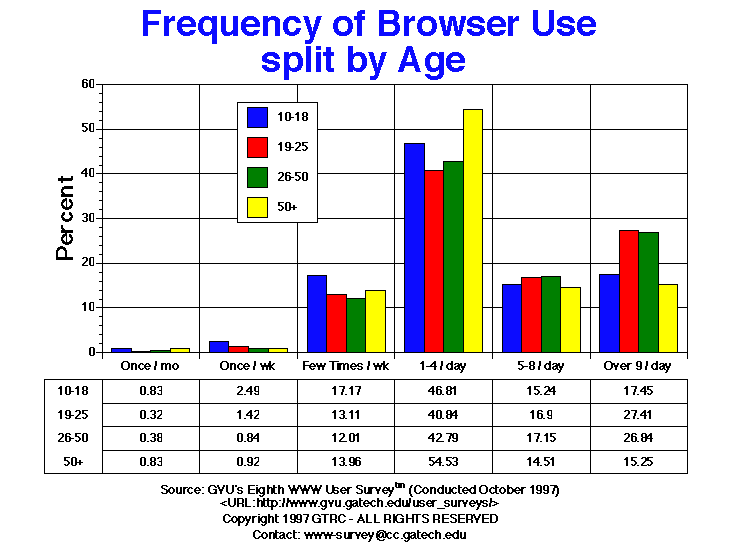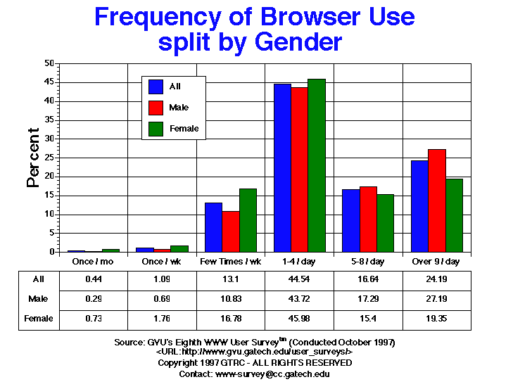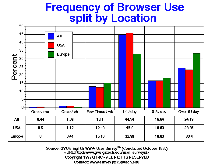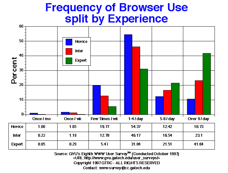 | Frequency of Use | All | Male | Female | USA | Europe | 10-18 | 19-25 | 26-50 | 50+ | Novice | Intermediate | Expert |