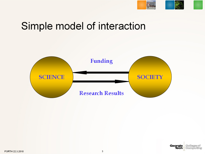 Before talking about the Internet, let me set the stage for my later remarks on the interaction between science and society.