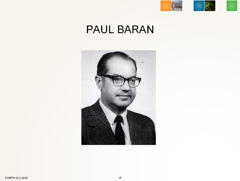 The complexity of the interactions continued during their work as well. Baran was working in a think-tank devoted to the problems of the military and it is reasonable to assume that, just as at here at FORTH, he was influenced to some extent as he worked by discussions with colleagues and knowledge of what they were working on. At the culmination of his scientific work, he then very directly interacted with those outside a research environment – the operational arms of the Defense Department.