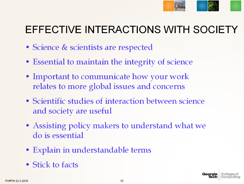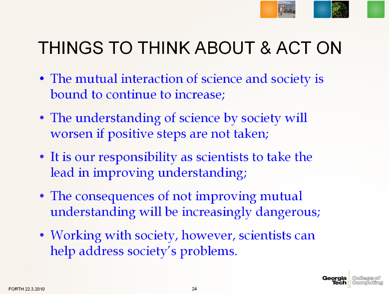 So, let me bring this to a close with some remarks on the future of the Internet and what we can do to improve the interactions between science and society.