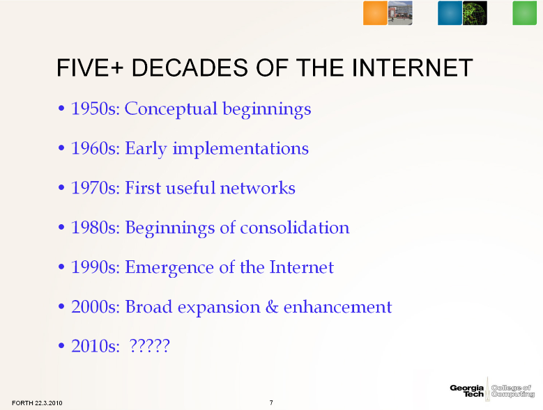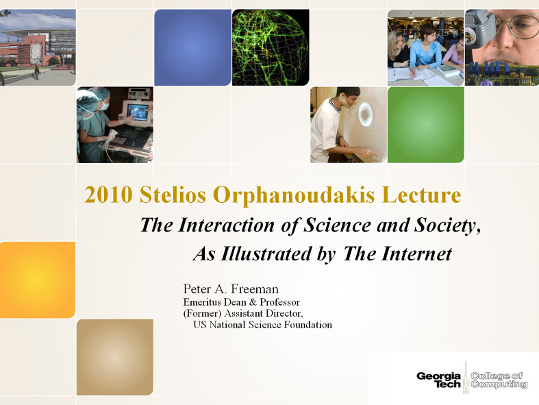 My lecture this evening is one that Professor Orphanoudakis could have given and I’m sure he did in some form many times. My basic message is that science and society are more tightly intertwined than most scientists – or members of the public – realize, and that we scientists need to act on this fact – as does the public. To illustrate what may seem like a rather dry subject, I want to tell you a story – the story of how the Internet came to be, where it may be headed, and what we can learn from this story that may be of value in our own work.