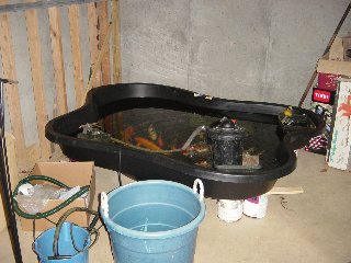 The fish's temporary home. We purchased an in-ground pond that holds 225