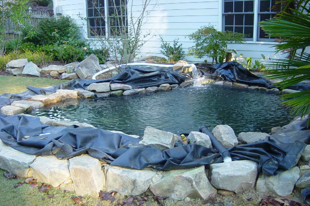 The pond also had large rocks on all the inside of the liner, thus