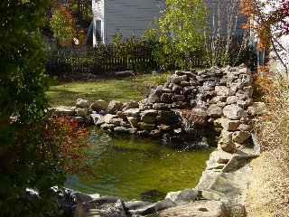 Front view of the completed pond. (Note the lack of leaves on the