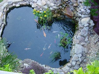 The completed pond. Everything's in place and the fish are happy. We