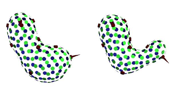 Particle-based surface (left) and similar surface after normal constraint changed (right).