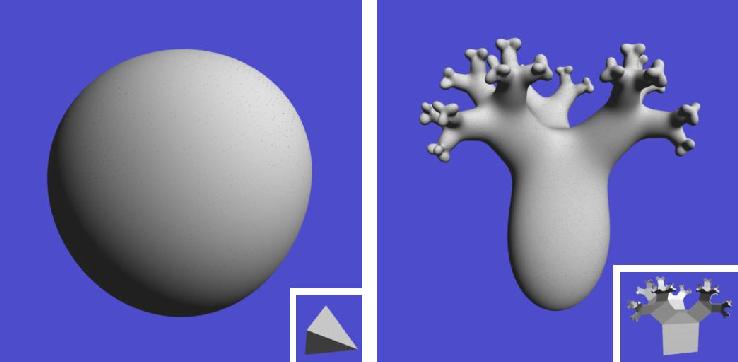 Surfaces from constraints based on tetrahedron (left) and branching structure (right).