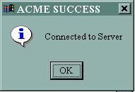 To change to VisEd mode, move the mouse pointer over the Morale Item on the MenuBar and press and release the left mouse button. You will now see the menu items under Morale. Move the mouse pointer over Connect ACME and press and release the left mouse button. (From now on, menu item selection like this will be abbreviated Morale->Connect ACME.)