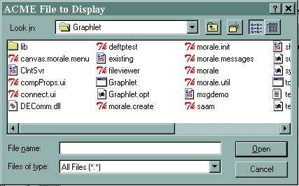The first step to doing any useful work is to load or create an ACME Description. This tutorial will look at loading an existing ACME representation. Use Morale->Open ACME Description.. to bring the file selection dialog: