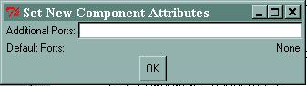 There is also a list on this dialog for default ports. This contains the ports that will be automatically available on this component due to its type. In this example, the component is untyped and so there are no default ports. For the tutorial enter dp1 dp2 in the text box and press the OK button.