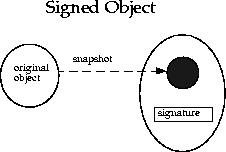 This class is an essential building block for other security primitives. SignedObject contains another Serializable object, the (to-be-)signed object and its signature. If the signature is not null, it contains a valid digital signature of the signed object. This is illustrated in the figure below.The underlying signing algorithm is set through a Signature object as a parameter to the