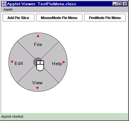For a short description of how to use this particular Pie Menu implementation, see the Java PieMenu page.