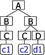 <A> <B><C>c1</C></B> <B><C>c2</C><D>d1</D></B> </A>
