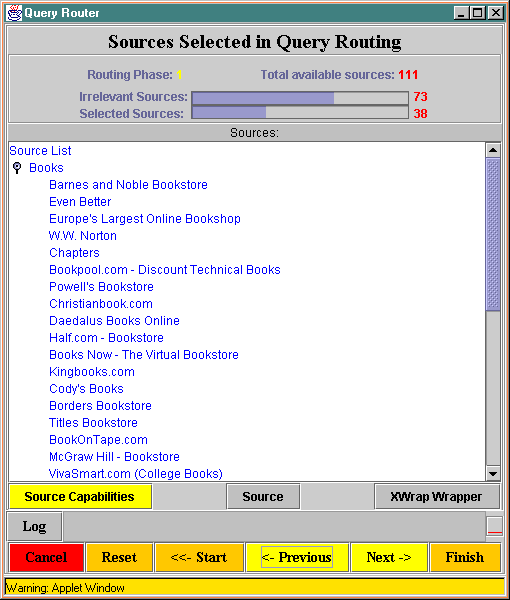 Choose Query Type | User Query | Choose category | Constructed Query | Known Sources | Routing Phase One | Routing Phase Two | Plan Generation | Execution | Results