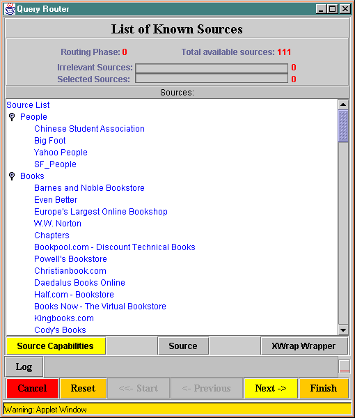 Choose Query Type | User Query | Choose category | Constructed Query | Known Sources | Routing Phase One | Routing Phase Two | Plan Generation | Execution | Results |