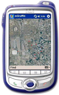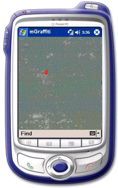 · The mGraffiti service is also responsible for handling satellite image navigation requests; caching of image tiles; requesting image tiles or location lookup. Satellite images and location lookup services are obtained from the Microsoft TerraService public XML web service.