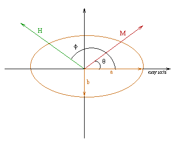 the energy due to crystal-anisotropy and shape-anisotropy: