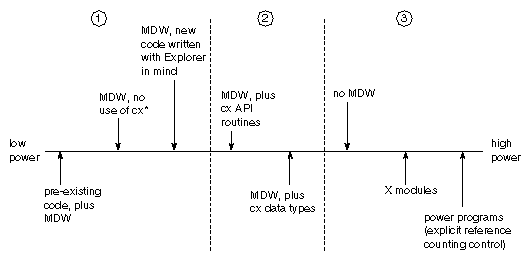 IRIS Explorer provides the module writer with many opportunities to make a choice between letting IRIS Explorer control a particular process in the module, or taking charge and running that process directly from the user function. As a result, you can write modules that operate at varying levels of independence from IRIS Explorer. Where the module writer settles on the continuum from total control to very little depends on current needs and programming expertise.