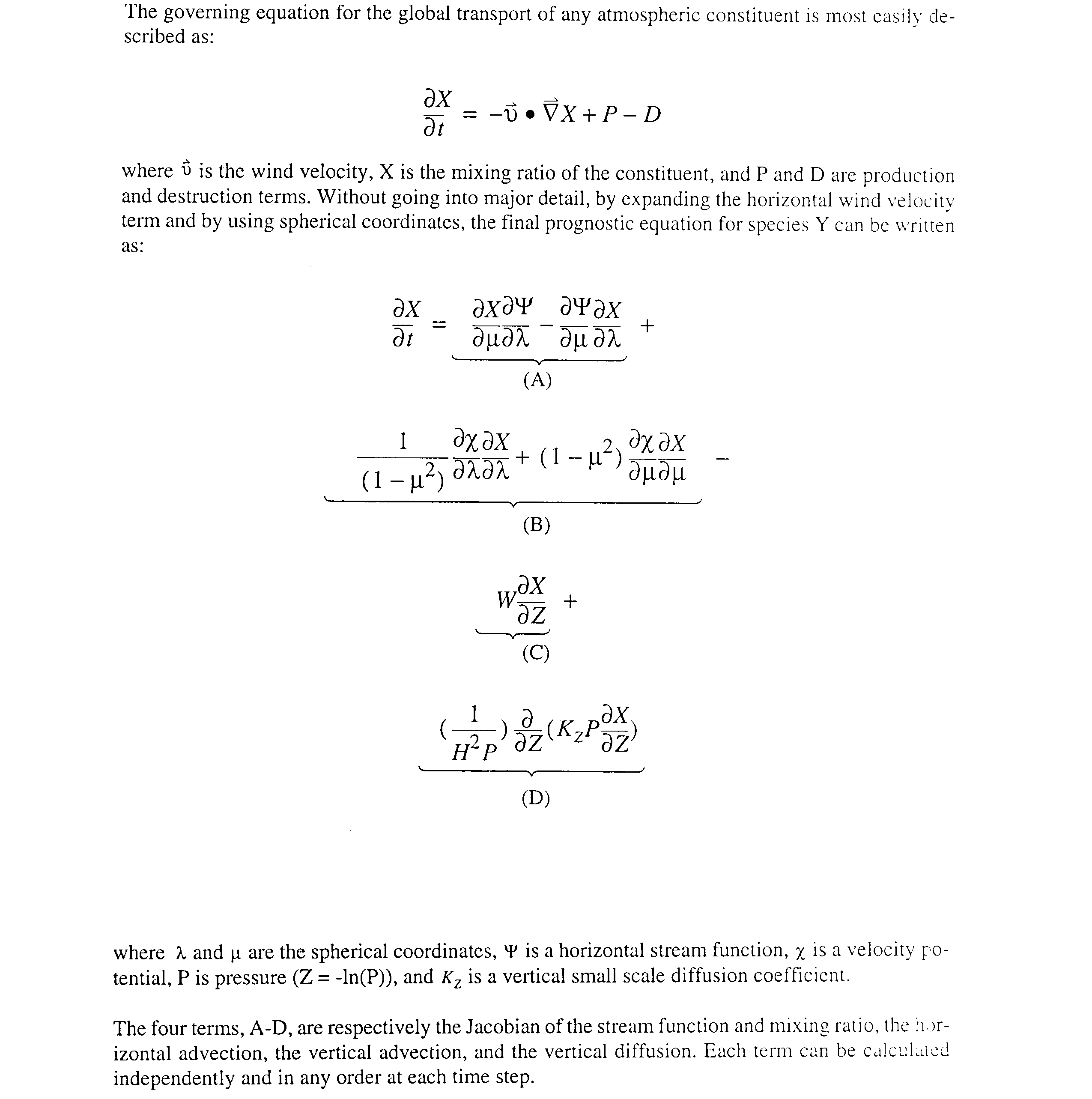 The governing equation for the global transport of any atmospheric constituent is most easily described as in these equations.
