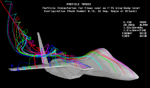 CFD Particle Trajectories for Flows over an F-15 Wing-Body-Inlet Configuration