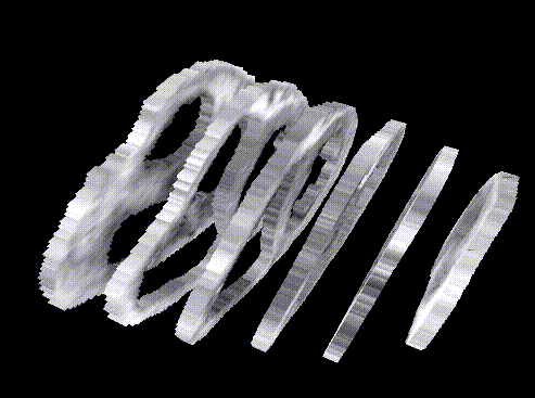By running through the sequence of images, one can see the shape changes during a heartbeat.