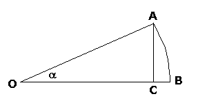 (see Fig.1) is equal to arch(AB)/OA, whereas sin(