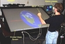 The Virtual Workbench is a non-immersive virtual reality display system. A user views a large stationary display that generates stereoscopic imagery similar to that used in 3D movies. The user's head position is accounted for and users can move objects with hand-held devices. |