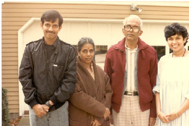 This is my dad's side of the family, starting from the far left is my Uncle Ravi, My Grandma, My Grandpa, and My Aunt Lilly.