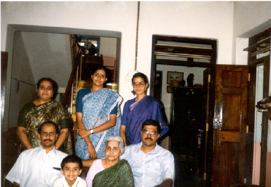 This is my mom's side of Family. Starting from the left most top row, and going clockwise is My Aunt Vijaya (Rajan Uncle's wife), My Mom, My aunt Meena (Uncle Babu's wife), My Uncle Babu (My mom's youngest brother), My Grandma, My adorable cousin Ayyappan (Uncle Rajan's son), and last but always first in my life My Uncle Rajan (my mom's younger brother).