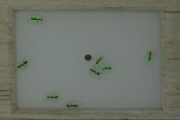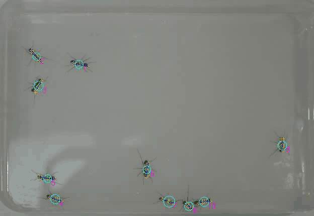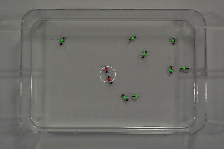 In this video you can see the original background subtracted data (small dots) with the tracks (larger open circles) overlayed, to show the effectiveness of the tracker. |