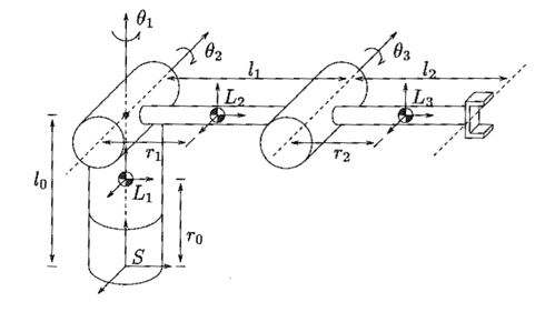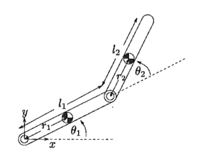 In the two link planar manipulator case the solution was generated from a model assuming the following parameters: